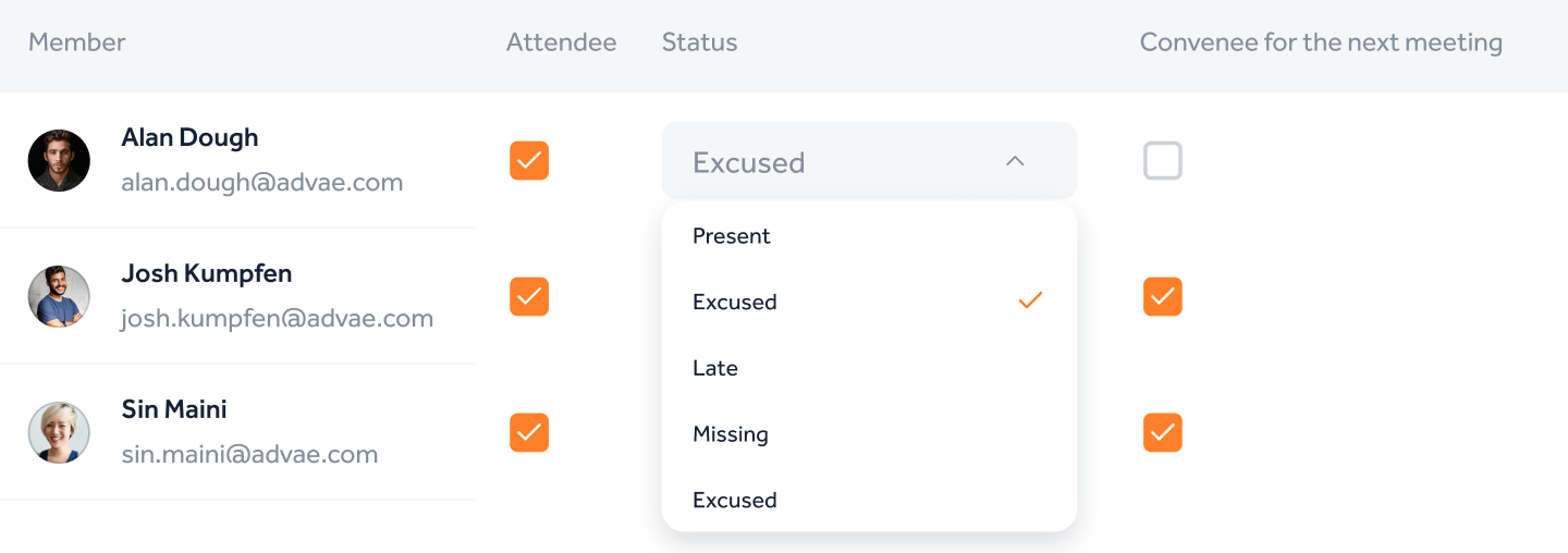 Once your meeting is created, you can make it better by inviting project members to join. You'll also be able to manage their attendance status on the day of the event, which helps you keep track and adjust how the meeting goes if needed.