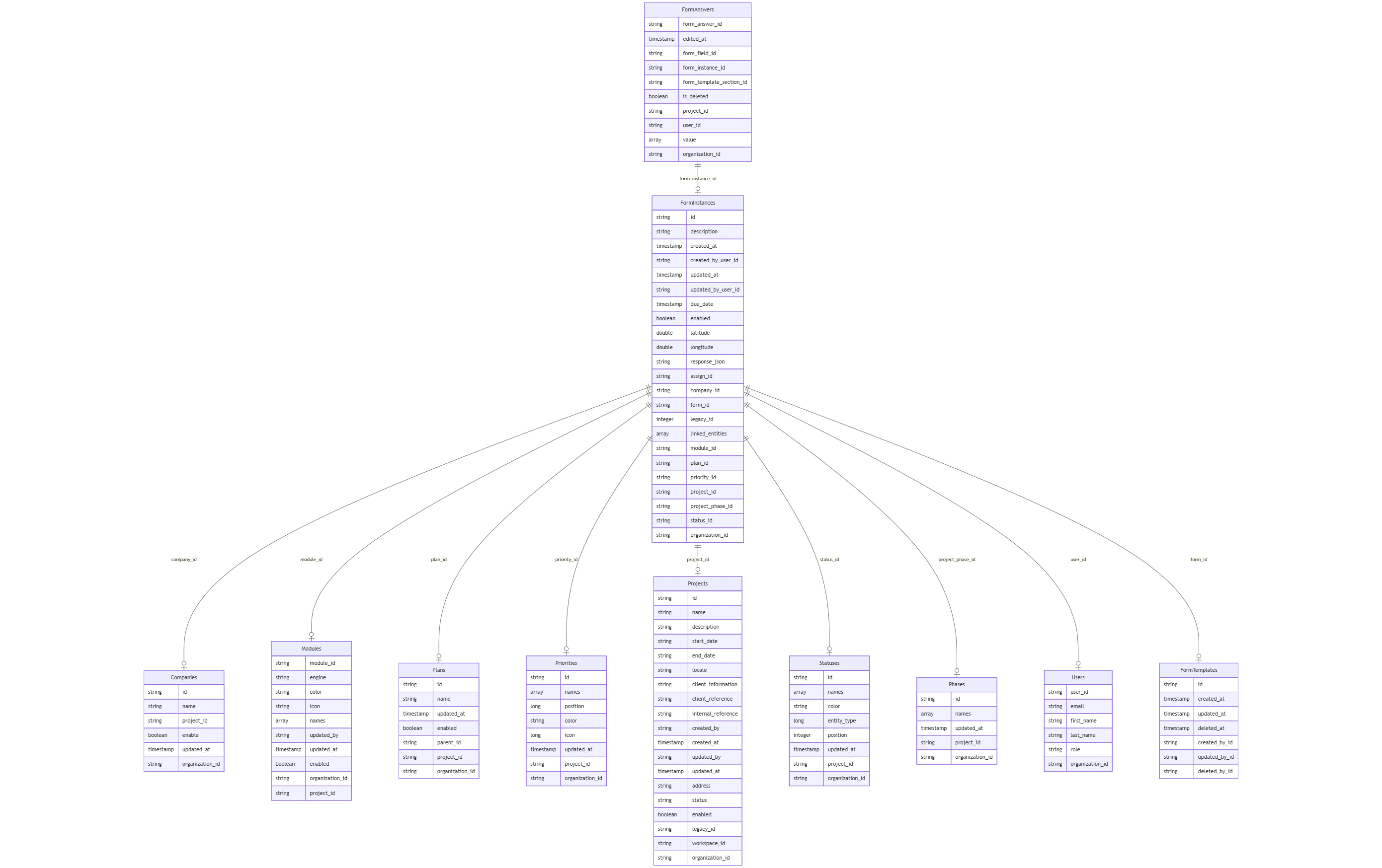 Link: The project_id in Form Instances connects to the id in Projects.