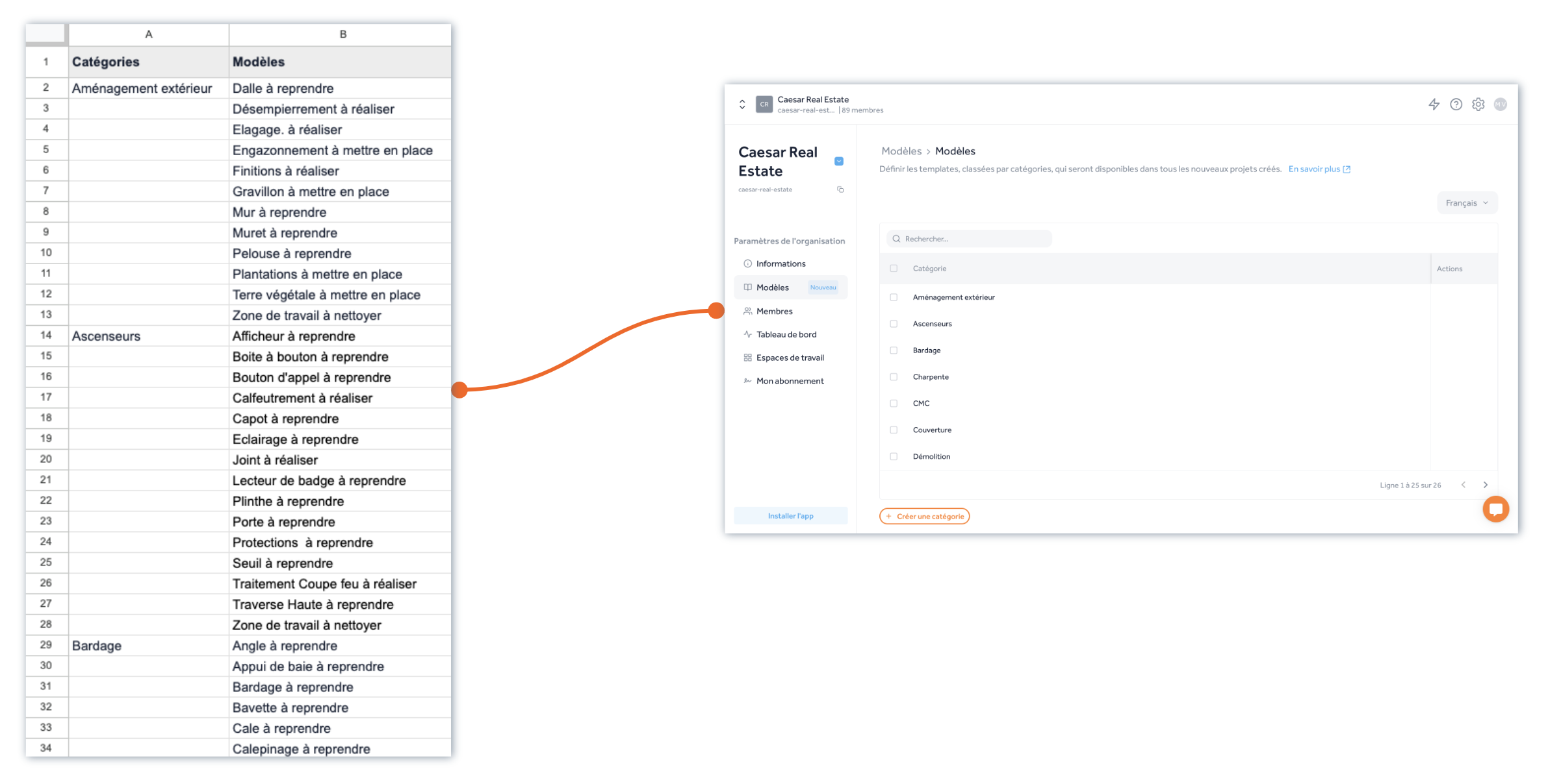 You can import the categories and templates you want (for example: “Painting” and “Fix to redo”) to help standardize your projects and keep things aligned with the different trades.