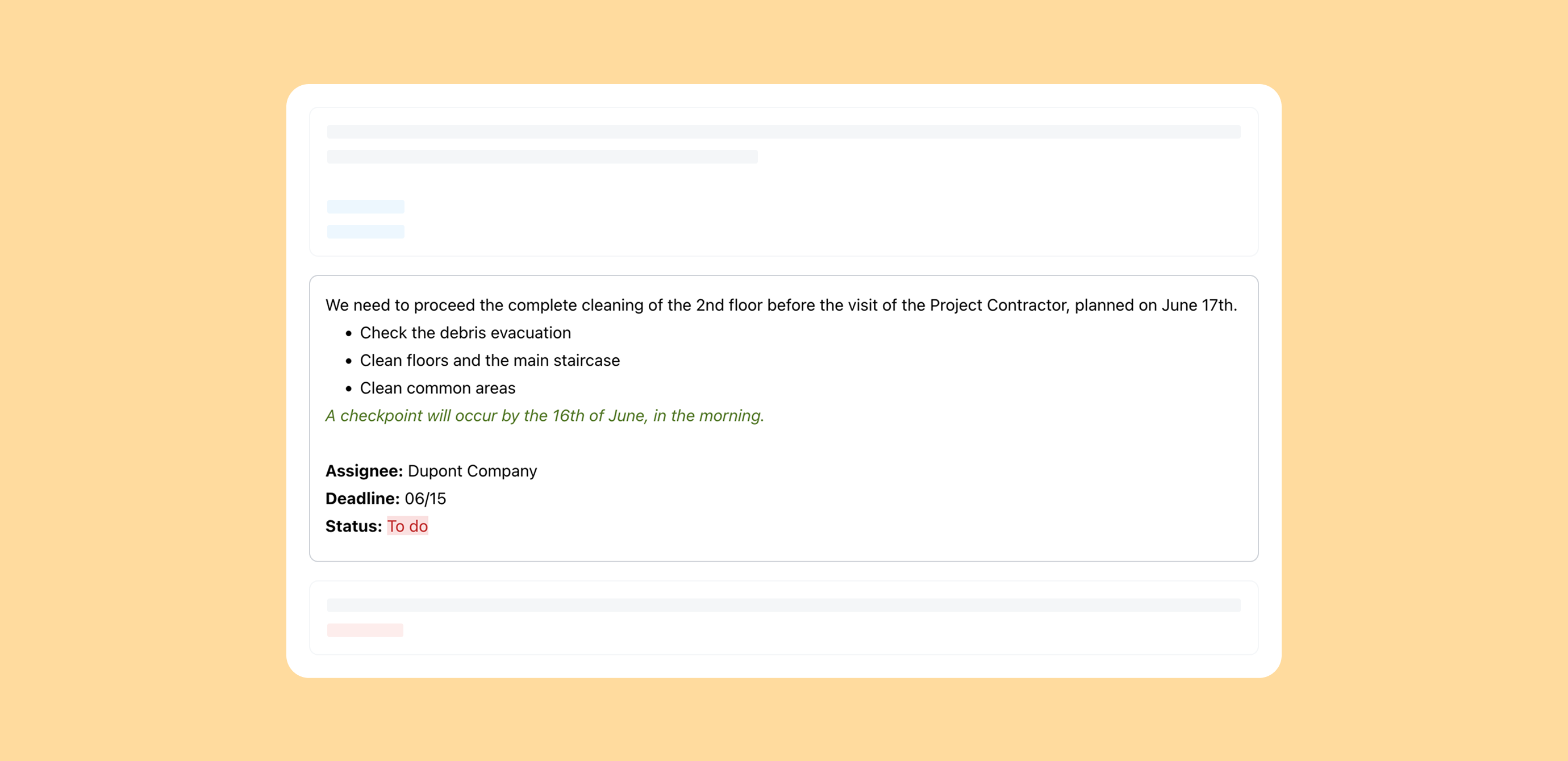 Each piece of information stays discreet and only shows when useful. Result: for the project manager, organizing the meeting gets easier and more structured; for the onsite operator, it's way easier to see at a glance what they need to do.
