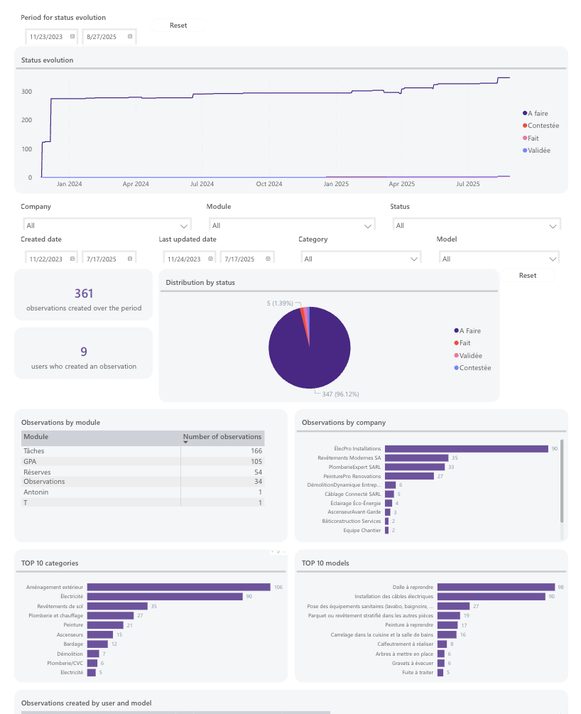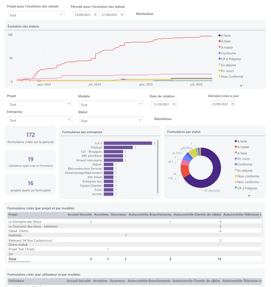 Les tableaux de bord Finalcad One vous permettent de visualiser vos données pour optimiser le suivi de vos projets et vous aider dans vos prises de décision.