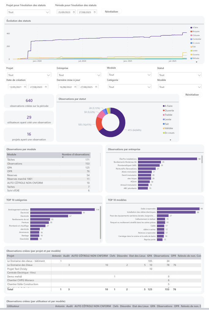 tableaux de bord personnalisés, avec Power BI par exemple.